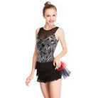 - Design: Flat Angled Leggings With Fringed Front and Mesh Back.Trim Silver Sequins in Geometric Patterns Over Black Lycra.