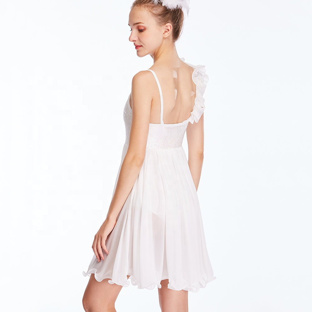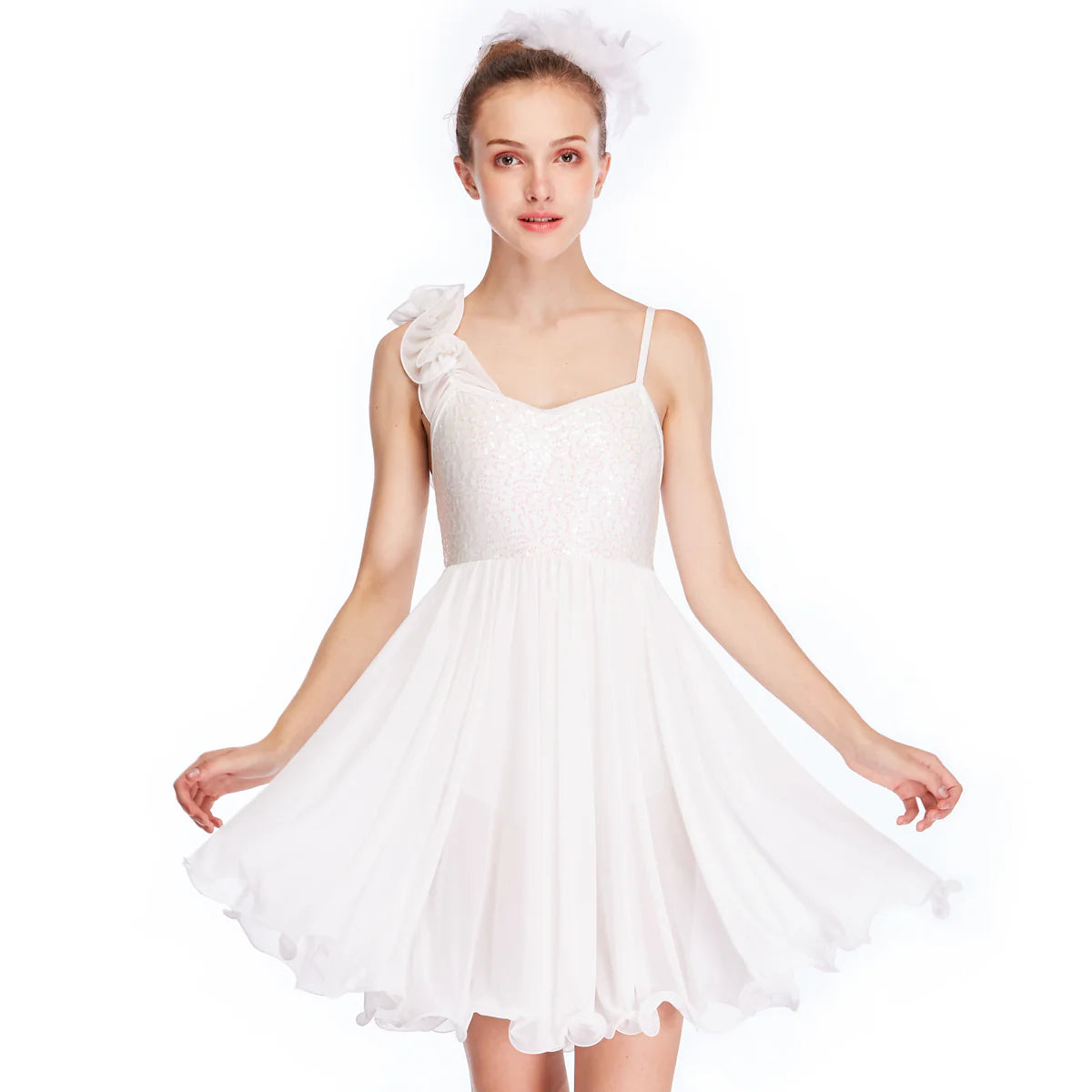 - Details: Asymmetrical Shoulder Straps, Ruffle Skirt