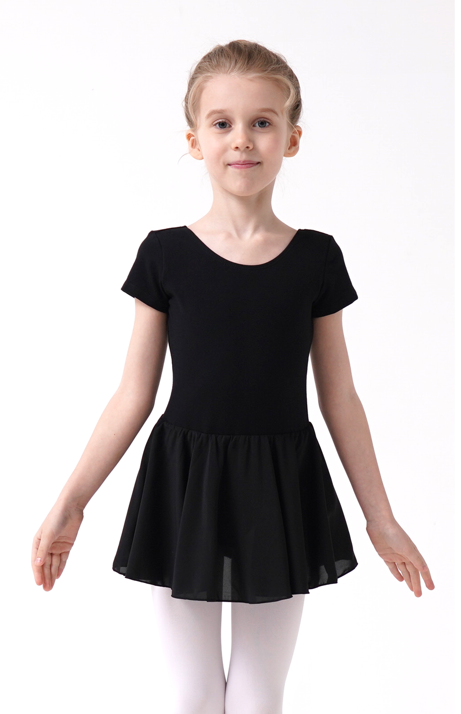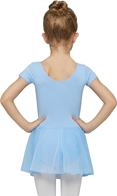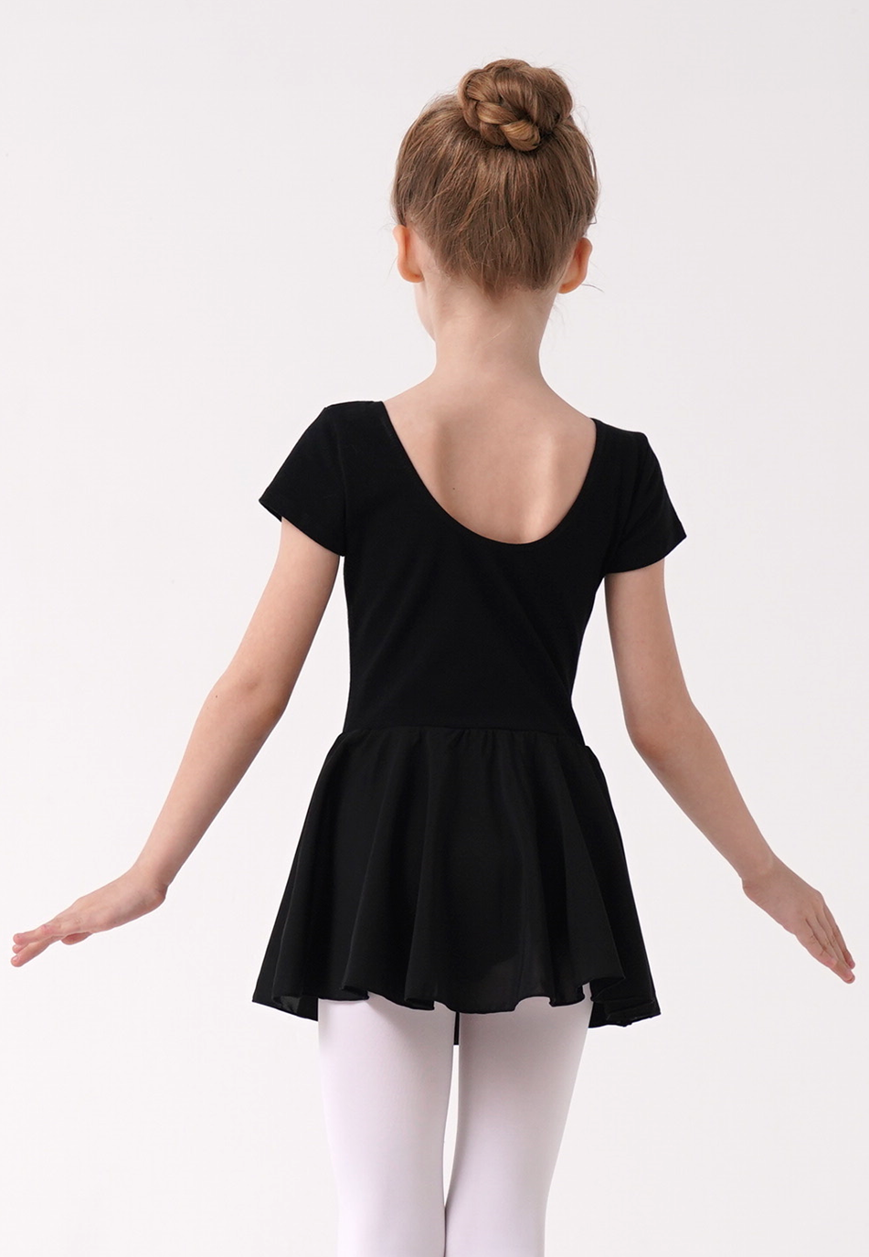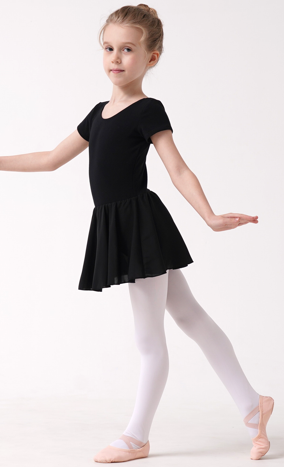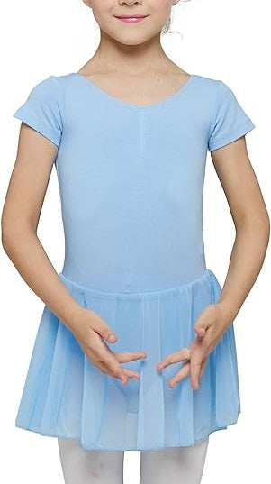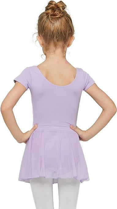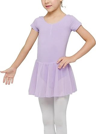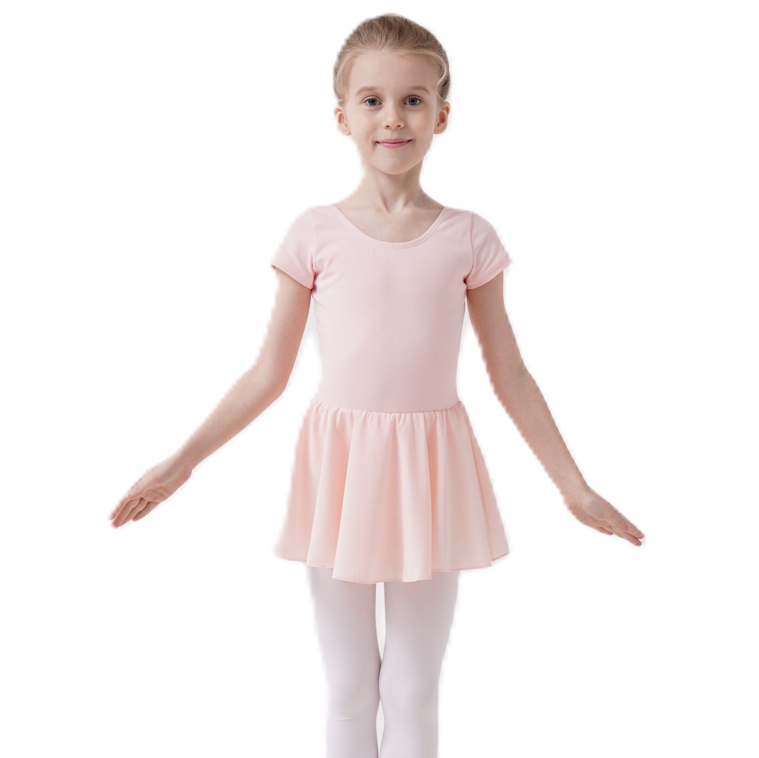 Vingt Ans Cotton Ballet Dance Leotards for Girls Short Sleeve with Skirt