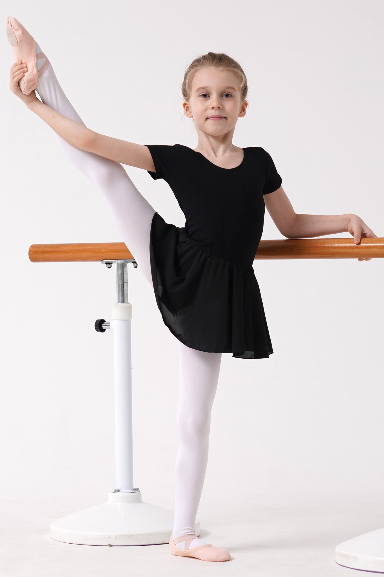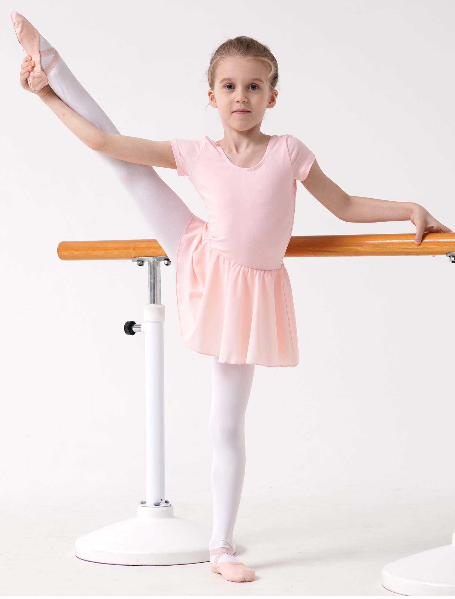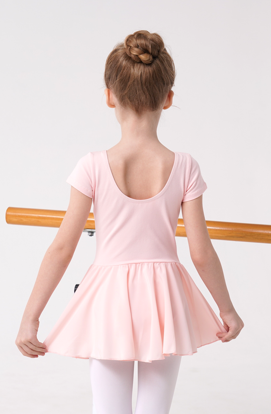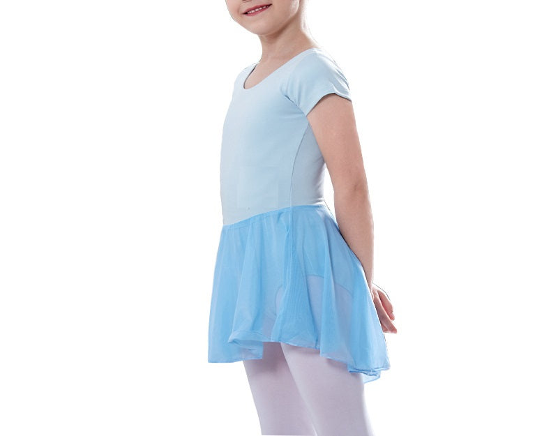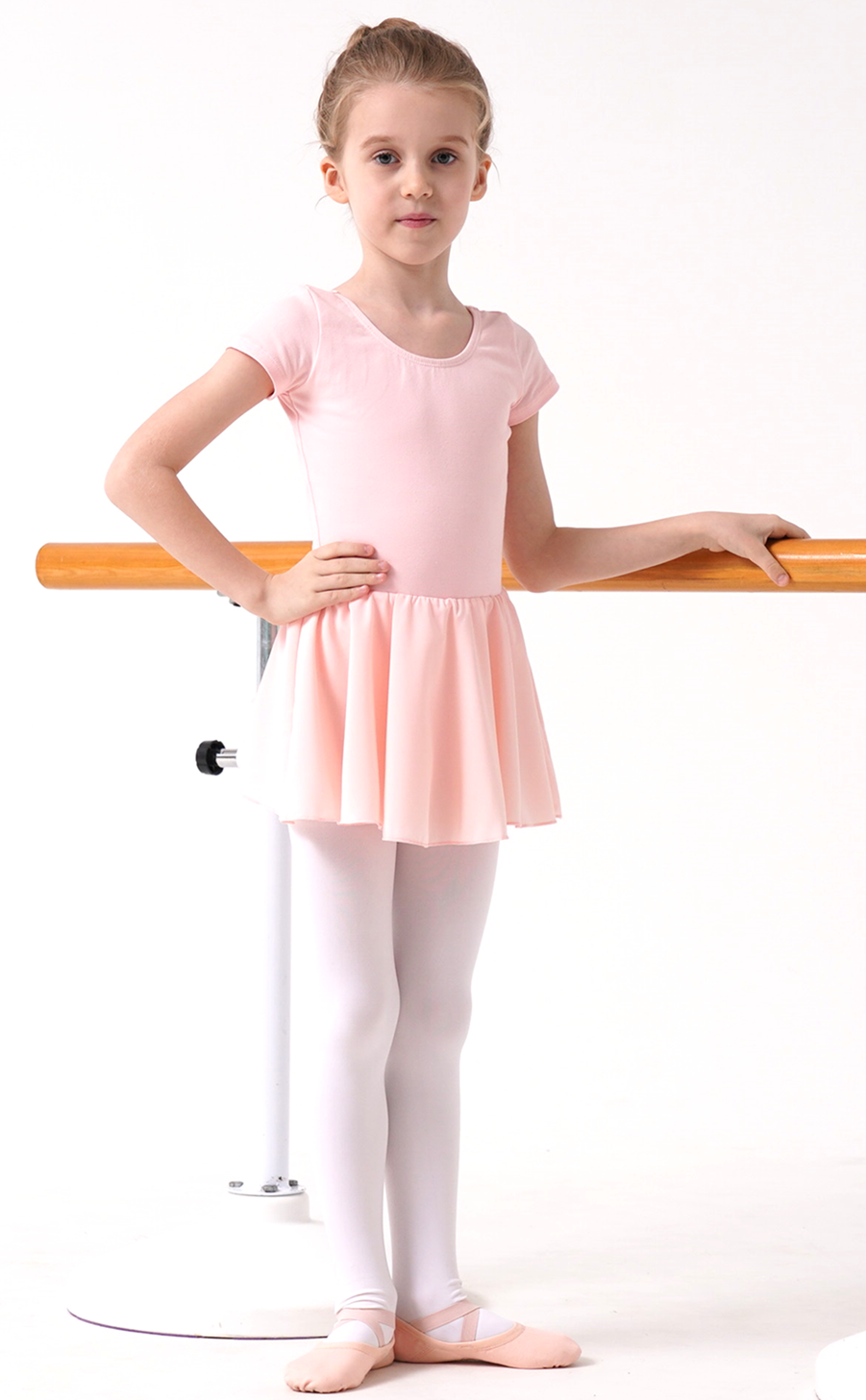 Vingt Ans Cotton Ballet Dance Leotards for Girls Short Sleeve with Skirt
