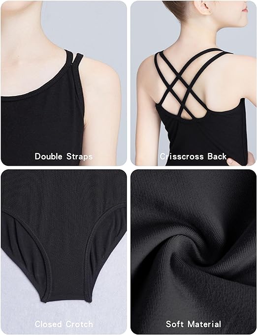 Vingt Ans Girls Cotton Classics Double Strap Camisole Leotard