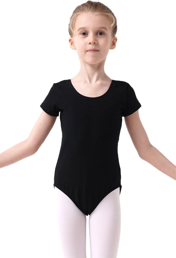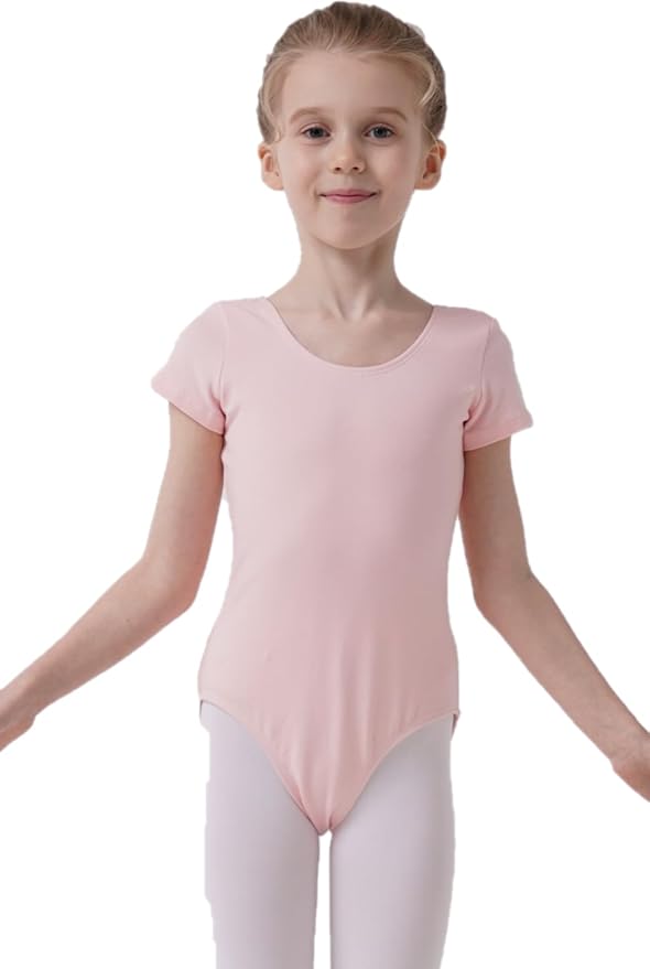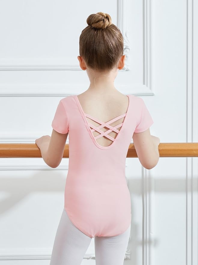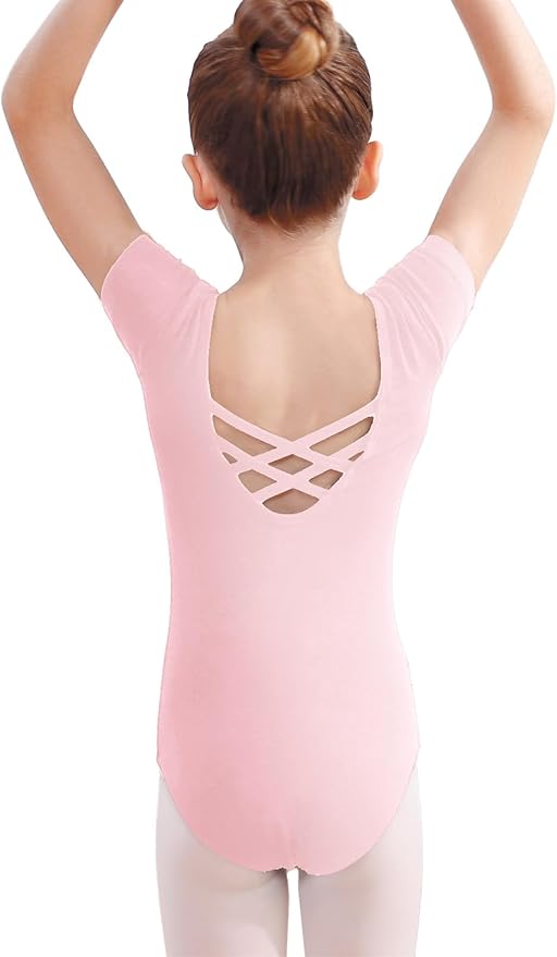 Vingt Ans Cotton Girls Ballet Leotard Crisscross Straps Back Short Sleeve Gymnastics Outfits