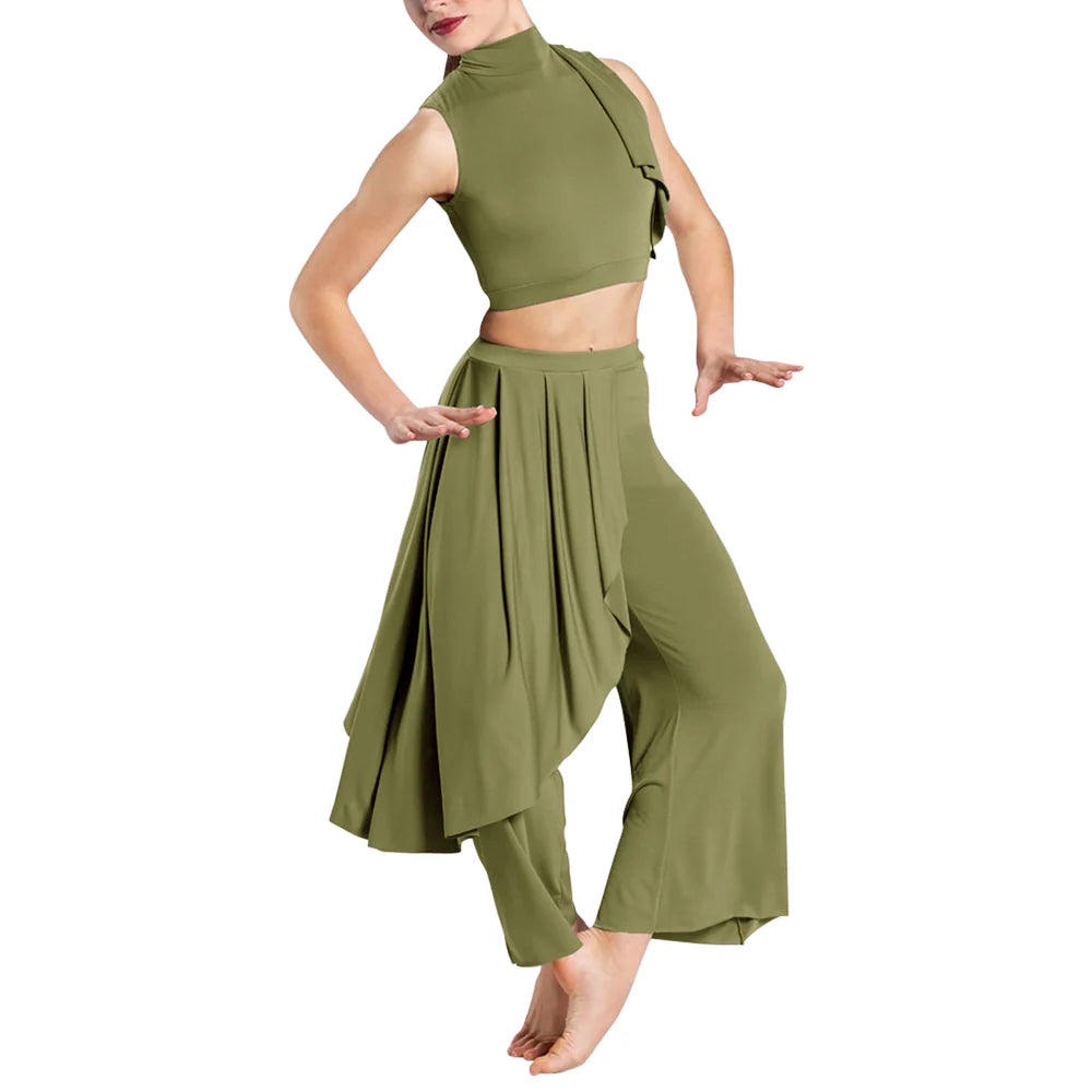 - Design: Shoulder and Pants With Flowing Pleated Drap